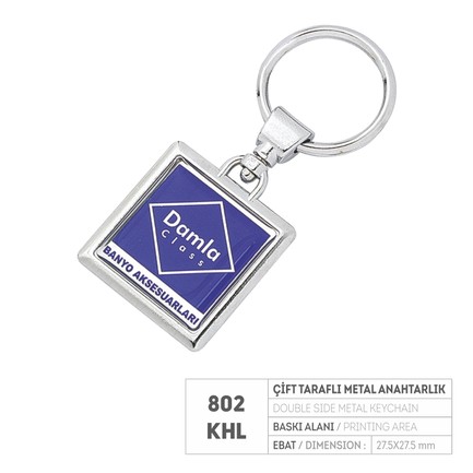PR 802-KHL Çift Taraflı Krom Kaplama Metal Anahtarlık