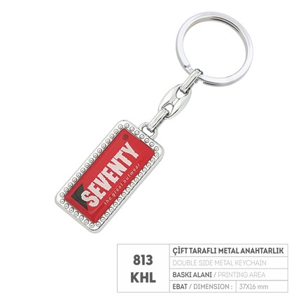 PR 813-KHL Çift Taraflı Krom Kaplama Metal Anahtarlık