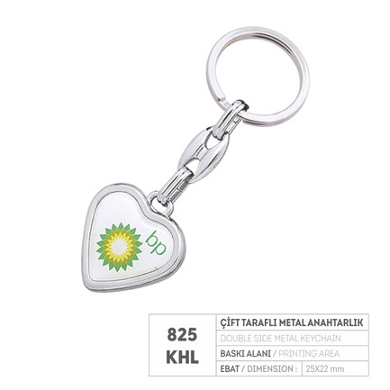 PR 825-KHL Çift Taraflı Krom Kaplama Metal Anahtarlık