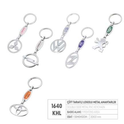 PR 1640-KHL Çift Taraflı Krom Kaplama Ara Logolu Metal Anahtarlık