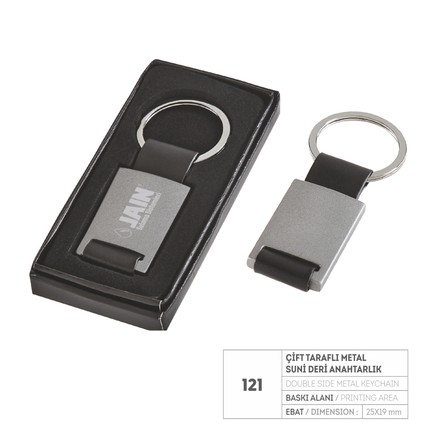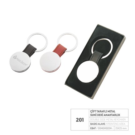 PR 201 Çift Taraflı Metal-Suni Deri Anahtarlık (Kutulu)