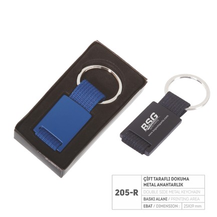 PR 205-R Çift Taraflı Metal Dokuma Anahtarlık (Kutulu)