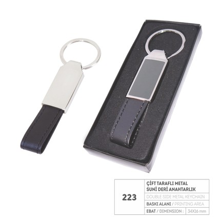 PR 223 Çift Taraflı Metal-Suni Deri Anahtarlık (Kutulu)