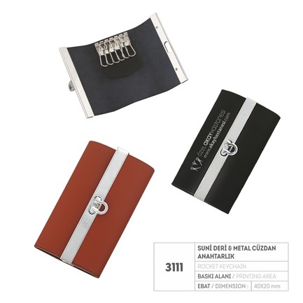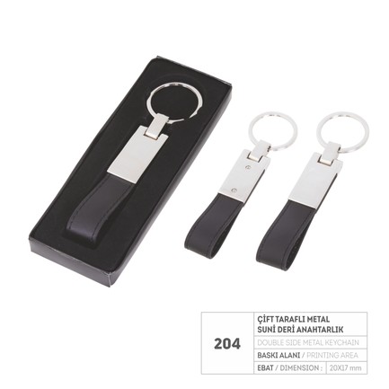 PR 204 Çift Taraflı Metal-Suni Deri Anahatarlık (Kutulu)