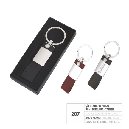 PR 207 Çift Taraflı Metal-Suni Deri Anahtarlık (Kutulu)